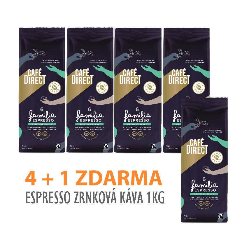 Výhodná akce pro milovníky kávy! Využijte akci 4 + 1 ZDARMA, v rámci které obdržíte 5x Espresso anglické značky Cafédirect. 1 balení a dopravné ZDARMA. Balení doporučujeme pro vlastní spotřebu, restaurační zařízení i kanceláře.