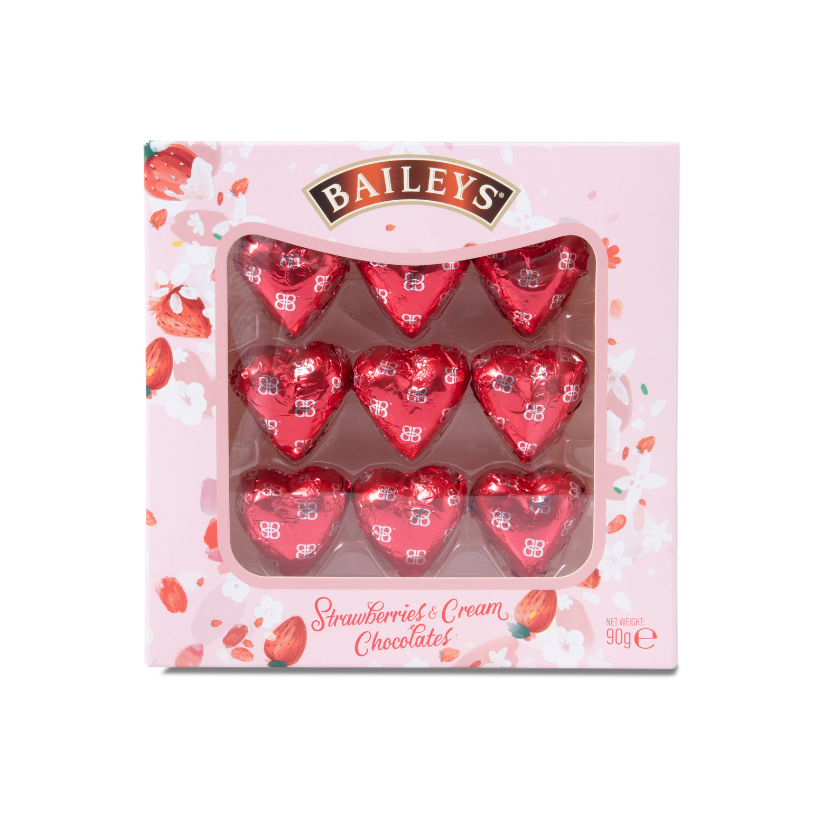 Zabalené luxusní čokoládové pralinky z mléčné čokolády plněné originálním irským krémovým likérem Baileys.