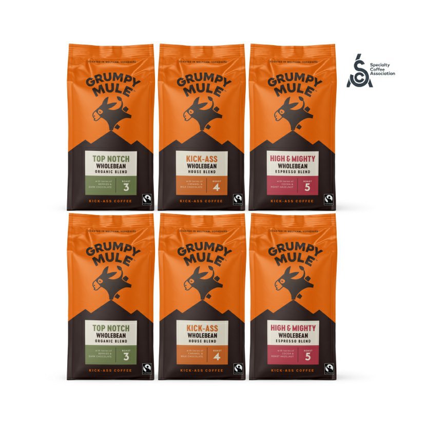 Grumpy Mule je také držitelem desítek ocenění Great Taste Awards a jejich zrnkové kávy jsou podle následné hrubosti mletí vhodné pro všechny způsoby přípravy – Moka, filtr, French Press i pákový kávovar.